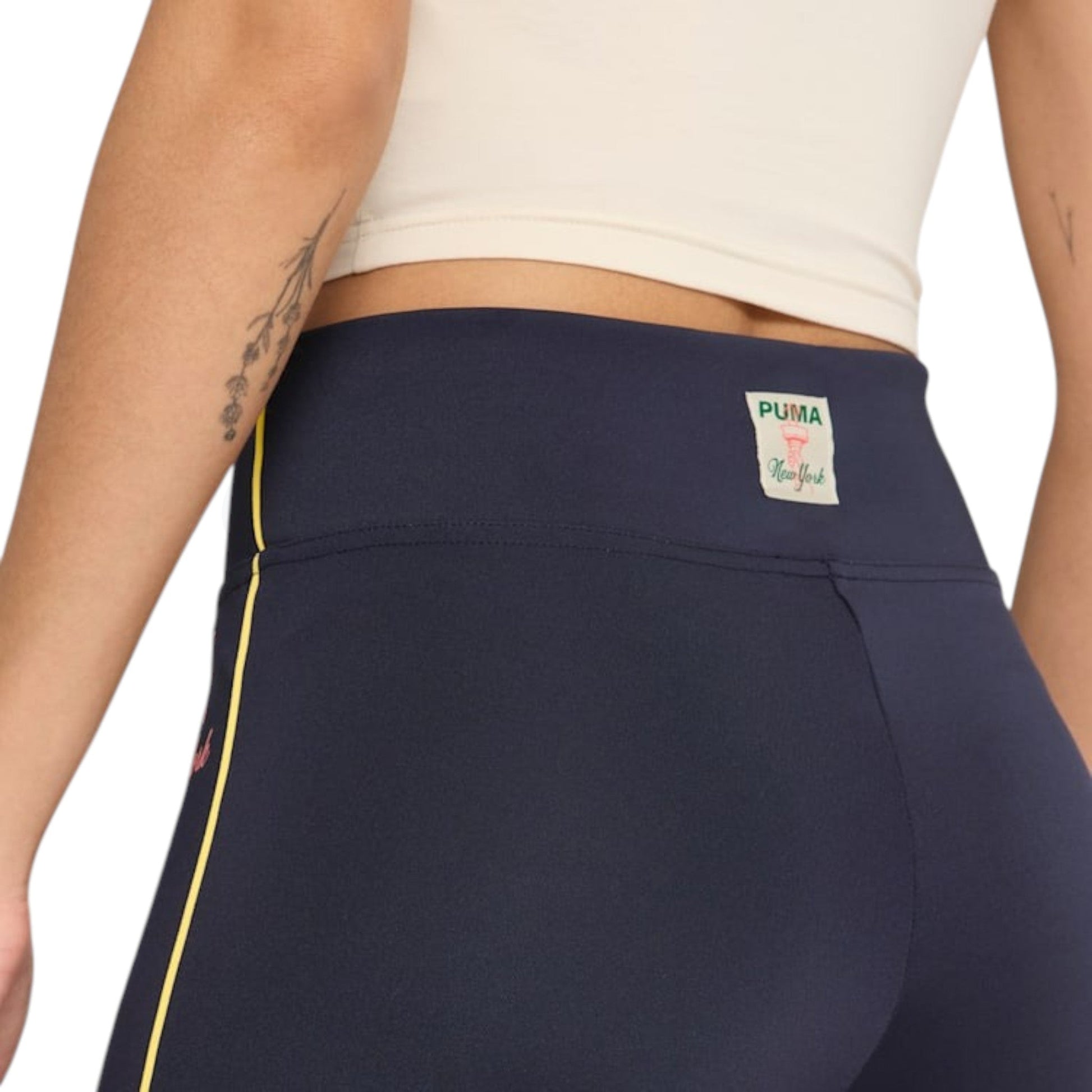 Lounge around in PUMA style with these comfortable leggings, boasting NYC-inspired details to help you rep your favorite city. These leggings feature a flared silhouette and high waistband for a unique look.