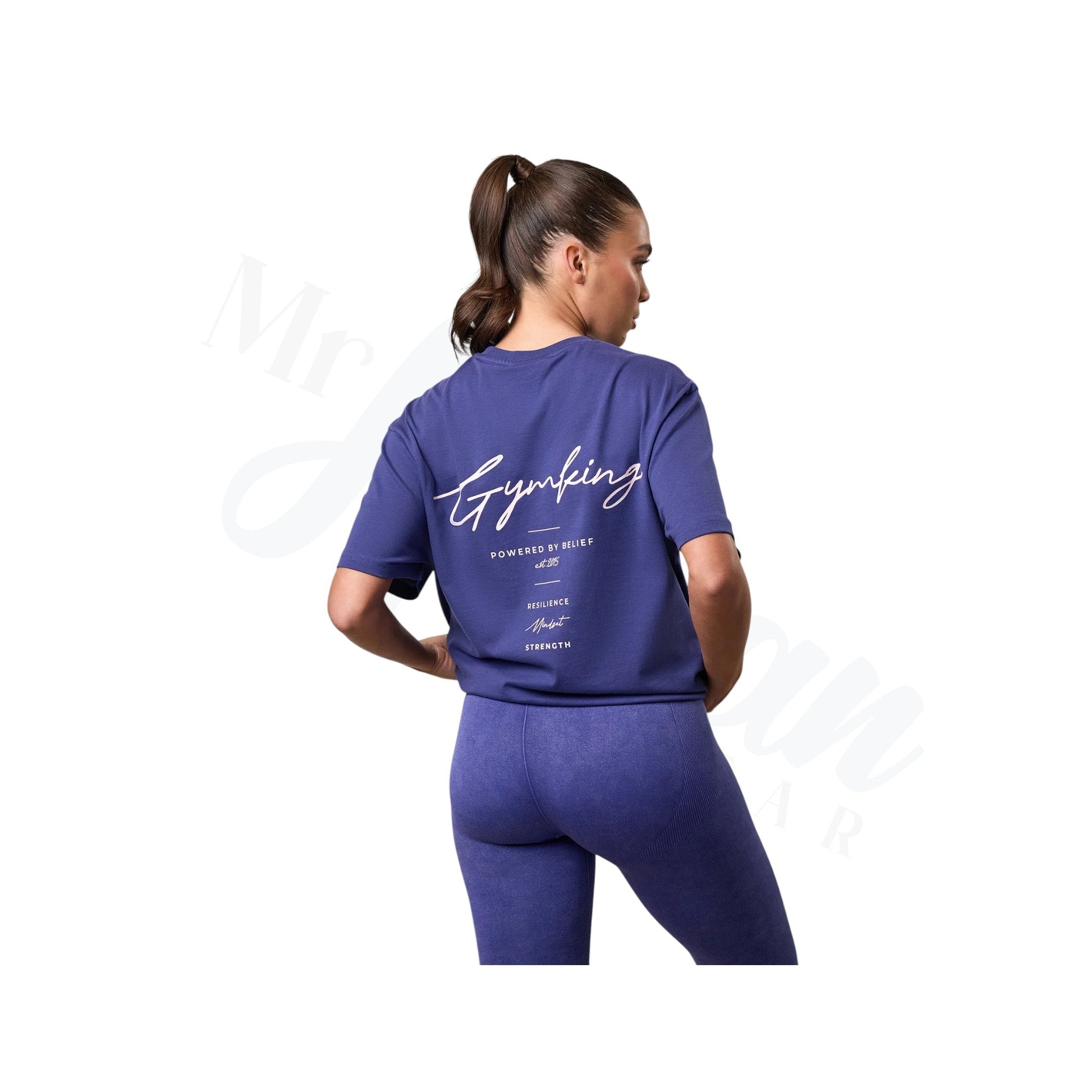 - Contrast 'GYM KING, POWERED BY BELIEF, EST. 2015, RESILIENCE, MINDSET, STRENGTH' print on back